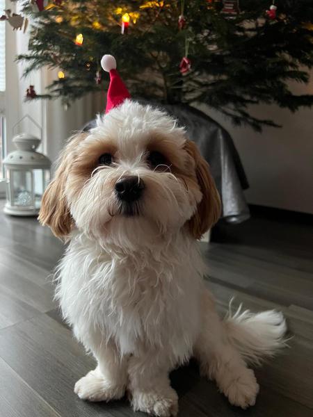 Maui ist ein Sohn von Coco und Henry. Toll sieht er aus vor dem Weihnachtsbaum.