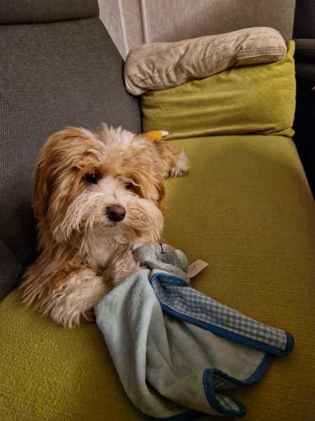 Bailey ist eine Tochter von Uno und Lova. In ihrem neuen Zuhause hat sie einen Hundekumpel, den Havaneser Chappy. Die beiden verstehen sich schon sehr gut.