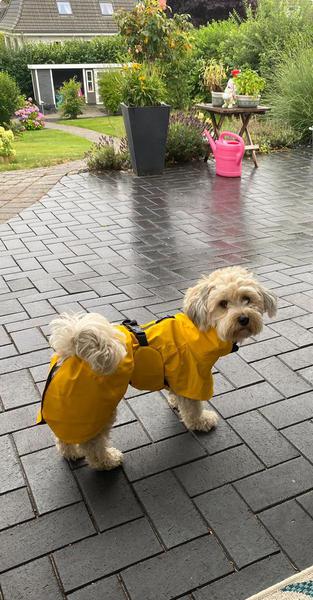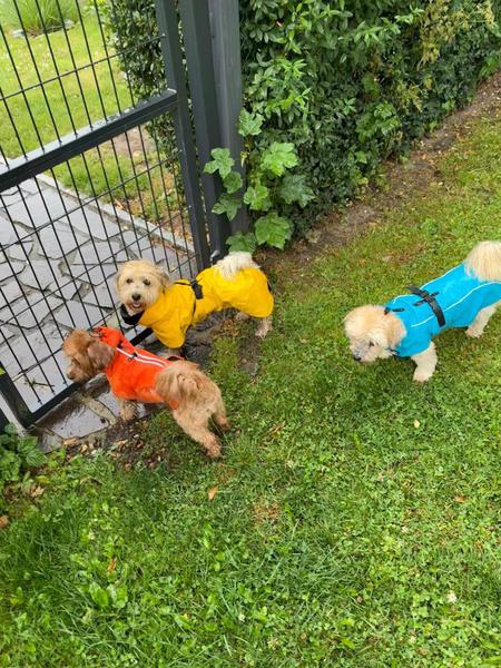 Maya ist eine Tochter von Uno und Gipsy. Wie es sich für eine echtes Nordlicht gehört, trägt sie Friesennerz.... Ihre Hundefreundinnen natürlich auch.