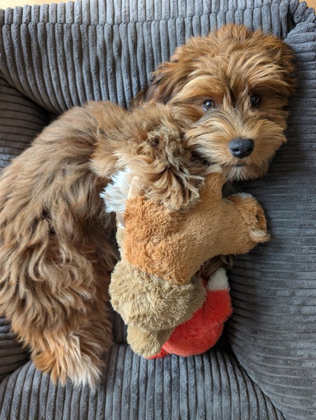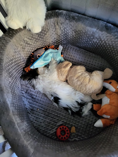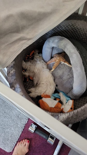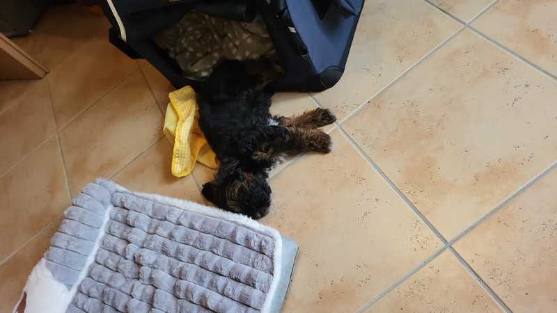 Ellie ist eine Tochter von Uno und Lova. Ein süßes Hundemädchen, die glücklich bei Andrea und Jakob angekommen ist. Als Bürohund eignet sie sich schon mal sehr gut. Wir haben die Kleinen auch schon an die Box als Schlaf- und Ruheplatz gewöhnt.