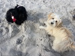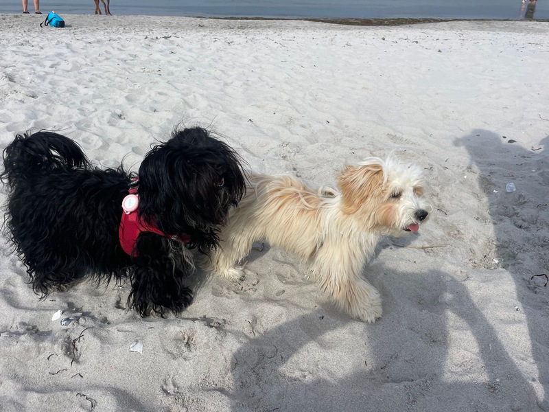 Kürzlich haben sich 2 Familien mit ihren Havis Peppina und Milow aus unserer Zucht am Strand getroffen. Sie haben dann festgestellt, dass Peppina (Tochter von Coco und Paco) und Milow (Sohn von Gino und Lany) verwandt sind. Peppina ist Milow's Tante. Die beiden waren sich sofort sympathisch und haben gespielt. Ich hab mich sehr über die Fotos gefreut.