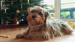 Willy ist ein Sohn von Lova und Gino Wir brav er vor dem Weihnachtsbaum sitzt.
